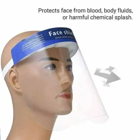Protective Face Shield protects from blood, body fluids, or harmful chemical splash.